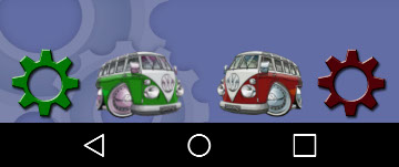 Click on the green cog and the clockings are sent to the cloud. (The red cog accesses the settings screen). The two vans are used to clock the start and end of trips. The procedure is the same as for T & A clockings